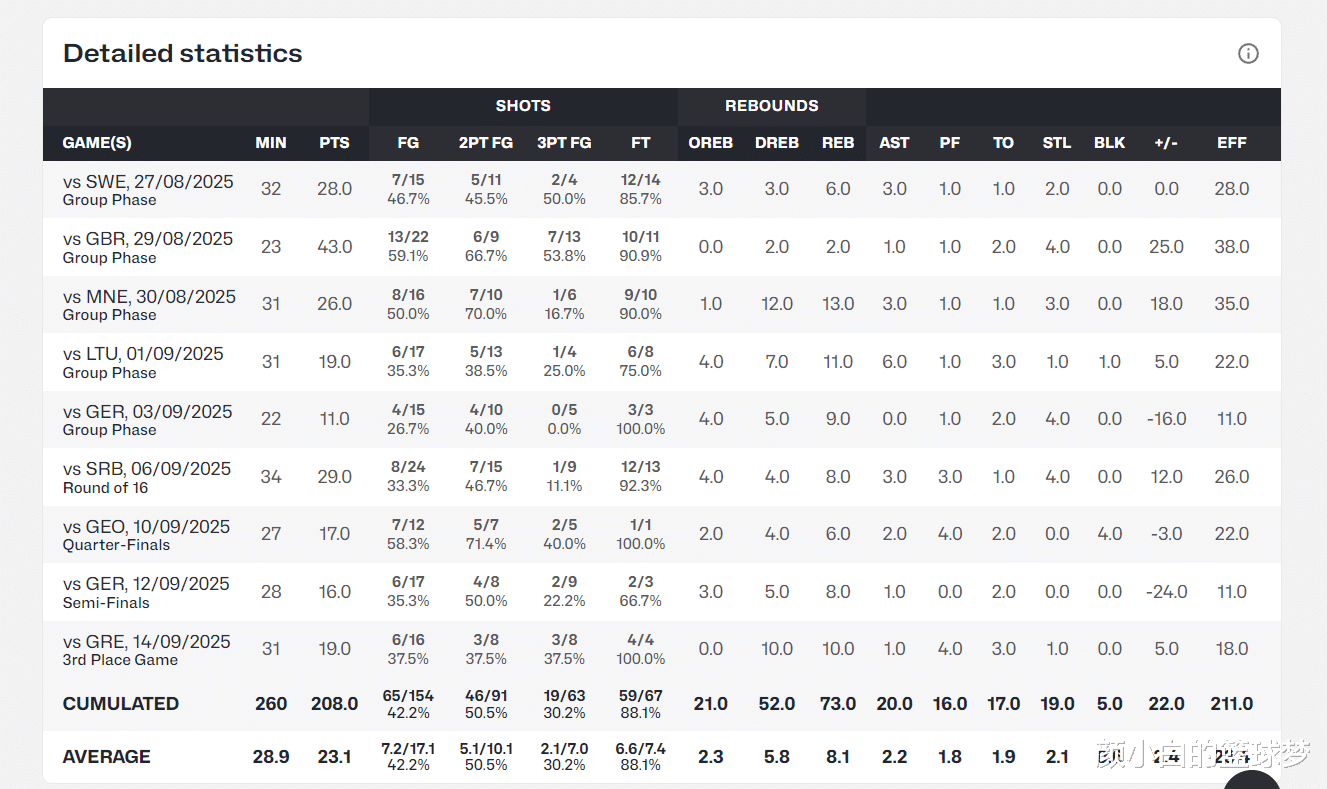 马尔卡宁是真正的北境之王,他在芬兰男篮的表现十分完美,今夏欧洲杯场均28.9分钟,拿到23.1分8.1篮板2.2助攻2.1抢断0.6盖帽,命中率42.2%,三分命中率30.2%。进入新赛季后马卡的表现也很出色,过去的两场比赛已经拿到53分。