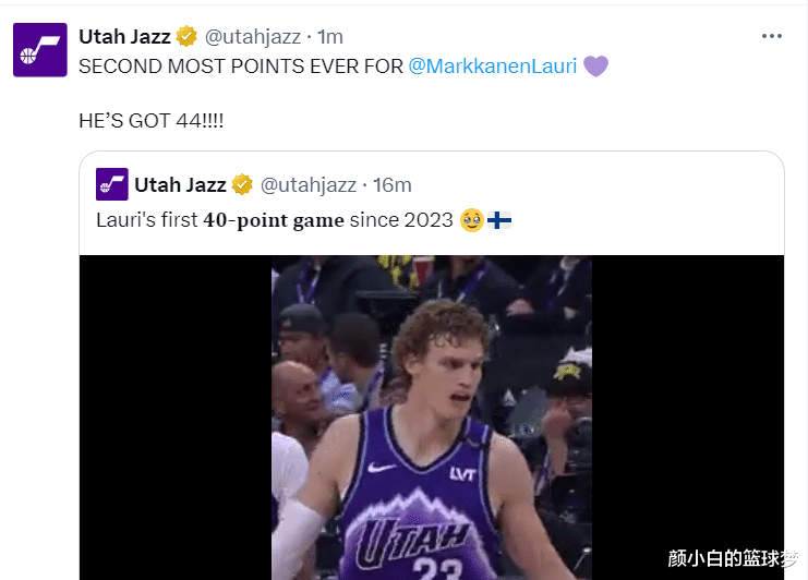 末节马卡单节10中4+罚球5中5拿到13分2篮板,常规时间已经拿到44分13篮板,爵士官方写道:这是马尔卡宁2023年后首个40+,但布克两罚一中+小奥补篮绝平,两队还要打加时。