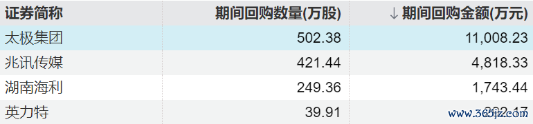 4家上市公司股票获回购,太极集团回购金额最高4家上市公司股票获回购,太极集团回购金额最高