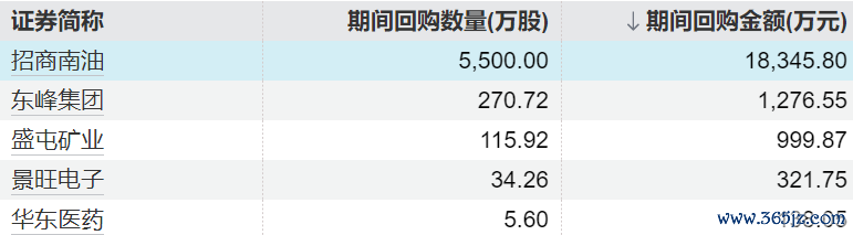 5家上市公司股票获回购,招商南油回购金额最高5家上市公司股票获回购,招商南油回购金额最高